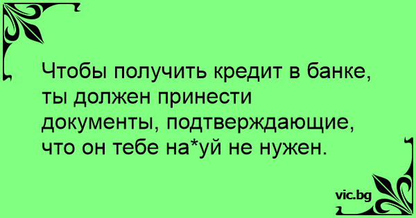 Чтобы получить кредит в банке, ты должен принести документы, подтверждающие, что он тебе на*уй не нужен.