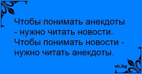 Чтобы понимать анекдоты - нужно читать новости. Чтобы понимать новости - нужно читать анекдоты.