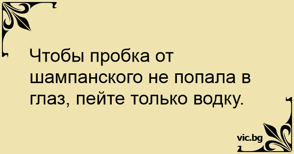 Чтобы пробка от шампанского не попала в глаз, пейте только водку.<br />