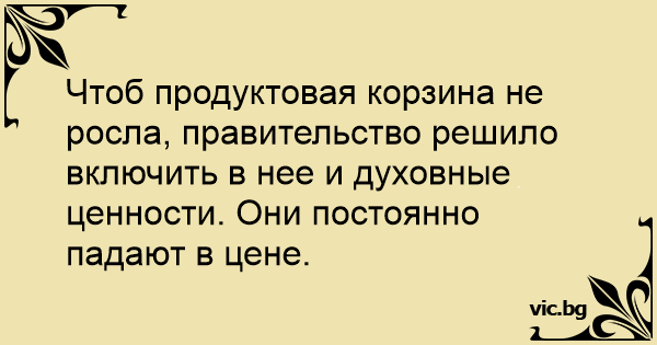 Чтоб продуктовая корзина не росла, правительство решило включить в нее и духовные ценности. Они постоянно падают в цене.