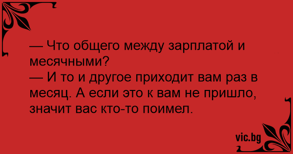— И то и другое приходит вам раз в месяц. А если это к вам не пришло, значит вас кто-то поимел.