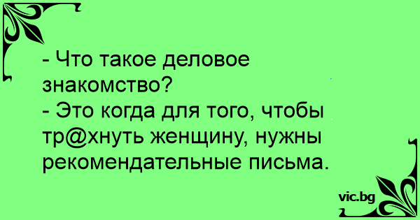 - Что такое деловое знакомство?<br />- Это когда для того, чтобы тр@хнуть женщину, нужны рекомендательные письма.