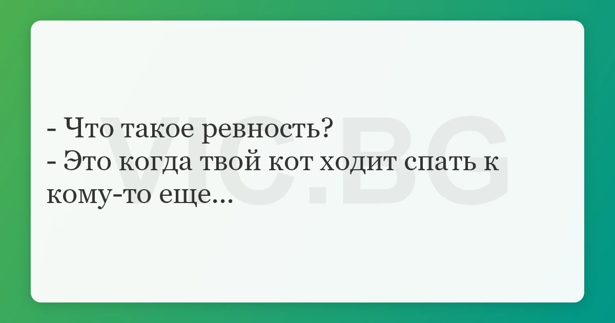 - Что такое ревность? - Это когда твой кот ходит спать к кому-то еще...