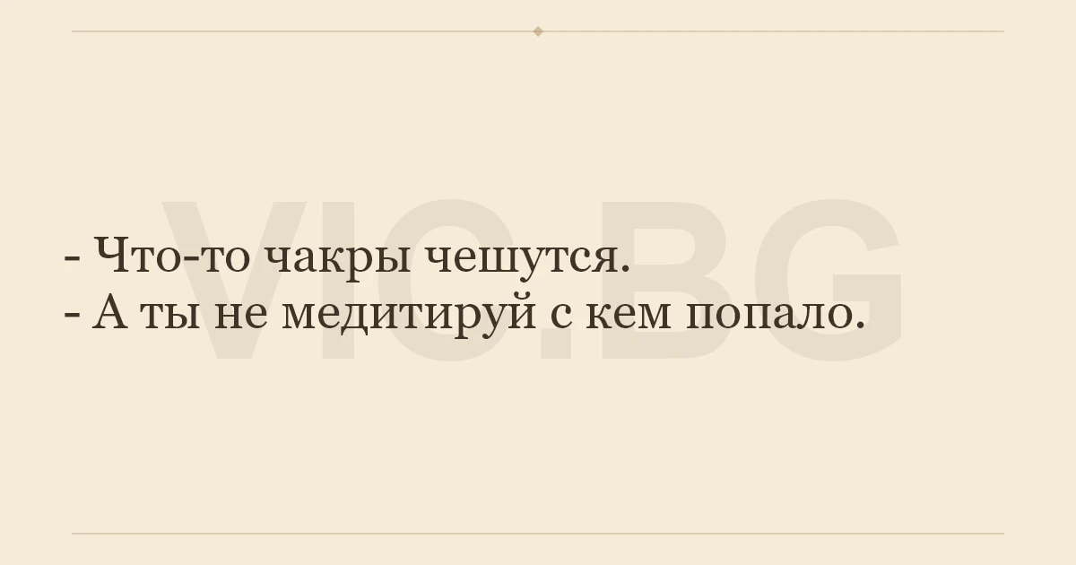 - Что-то чакры чешутся. - А ты не медитируй с кем попало.