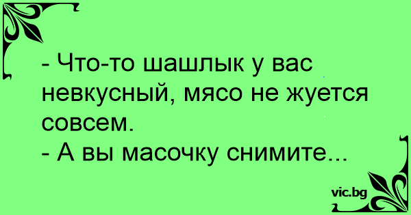- Что-то шашлык у вас невкусный, мясо не жуется совсем.