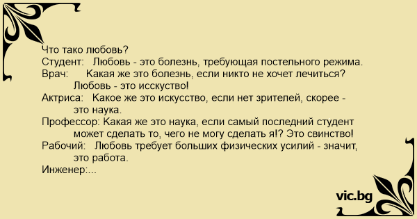 Студент: Любовь - это болезнь, требующaя постельного режимa.