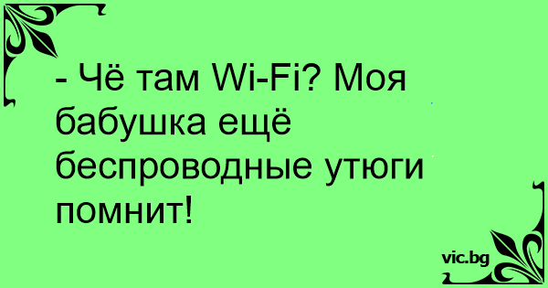 - Чё там Wi-Fi? Моя бабушка ещё беспроводные утюги помнит!