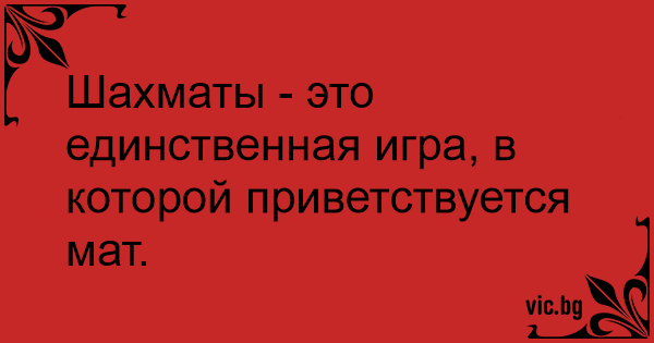 Шахматы - это единственная игра, в которой приветствуется мат.