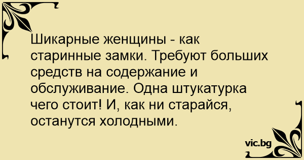 Шикарные женщины - как старинные замки. Требуют больших средств на содержание и обслуживание. Одна штукатурка чего стоит! И, как ни старайся, останутся холодными.