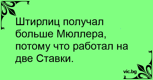Штирлиц получал больше Мюллера, потому что работал на две Ставки.