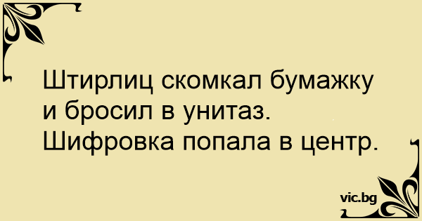 Штирлиц скомкал бумажку и бросил в унитаз. Шифровка попала в центр.