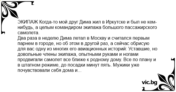ЭКИПАЖ Когда-то мой друг Дима жил в Иркутске и был не кем-нибудь, а целым командиром экипажа большого пассажирского самолета.