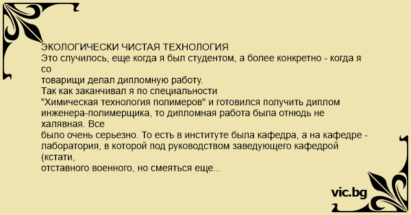 ЭКОЛОГИЧЕСКИ ЧИСТАЯ ТЕХНОЛОГИЯ Это случилось, еще когда я был студентом, а более конкретно - когда я со товарищи делал дипломную работу.