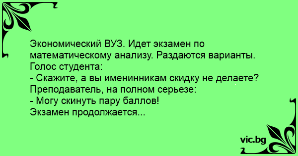 Экономический ВУЗ. Идет экзамен по математическому анализу. Раздаются варианты. Голос студента: