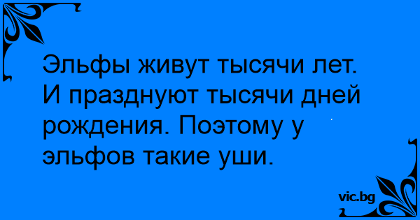 Эльфы живут тысячи лет. И празднуют тысячи дней рождения. Поэтому у эльфов такие уши.