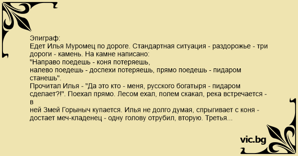 Едет Илья Муромец по дороге. Стандартная ситуация - раздорожье - три