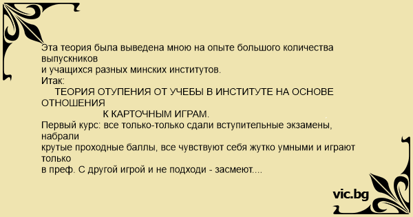 Эта теория была выведена мною на опыте большого количества выпускников и учащихся разных минских институтов.