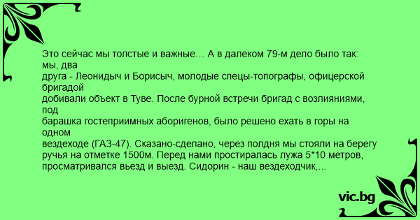 друга - Леонидыч и Борисыч, молодые спецы-топографы, офицерской бригадой