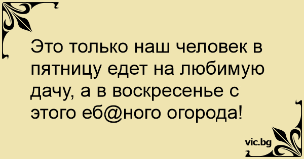 Это только наш человек в пятницу едет на любимую дачу, а в воскресенье с этого еб@ного огорода!