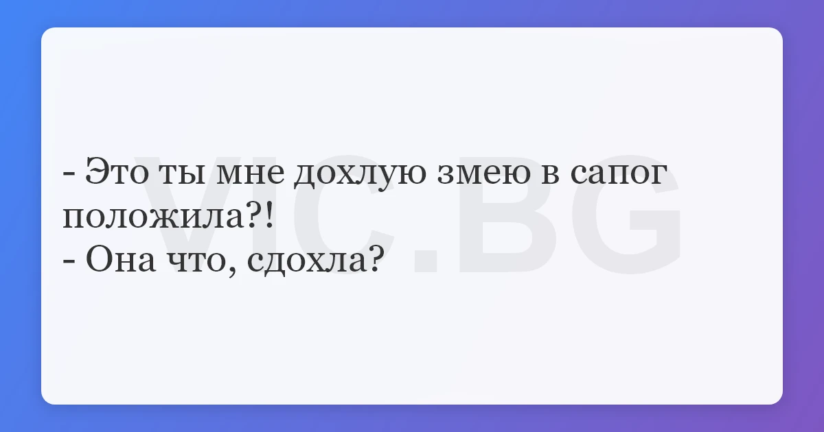 - Это ты мне дохлую змею в сапог положила?!