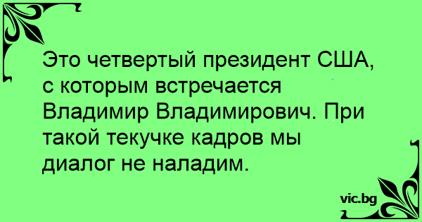 Это четвертый президент США, с которым встречается Владимир Владимирович. При такой текучке кадров мы диалог не наладим.