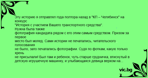 Эту историю я отправлял года полтора назад в "КП – Челябинск" на конкурс "История с участием Вашего транспортного средства".