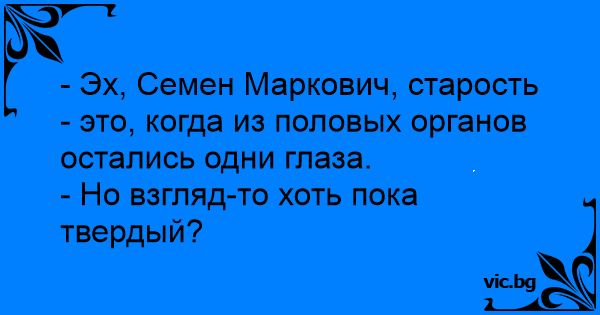 - Эх, Семен Маркович, старость - это, когда из половых органов остались одни глаза.