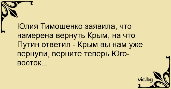 Юлия Тимошенко заявила, что намерена вернуть Крым, на что Путин ответил - Крым вы нам уже вернули, верните теперь Юго-восток...