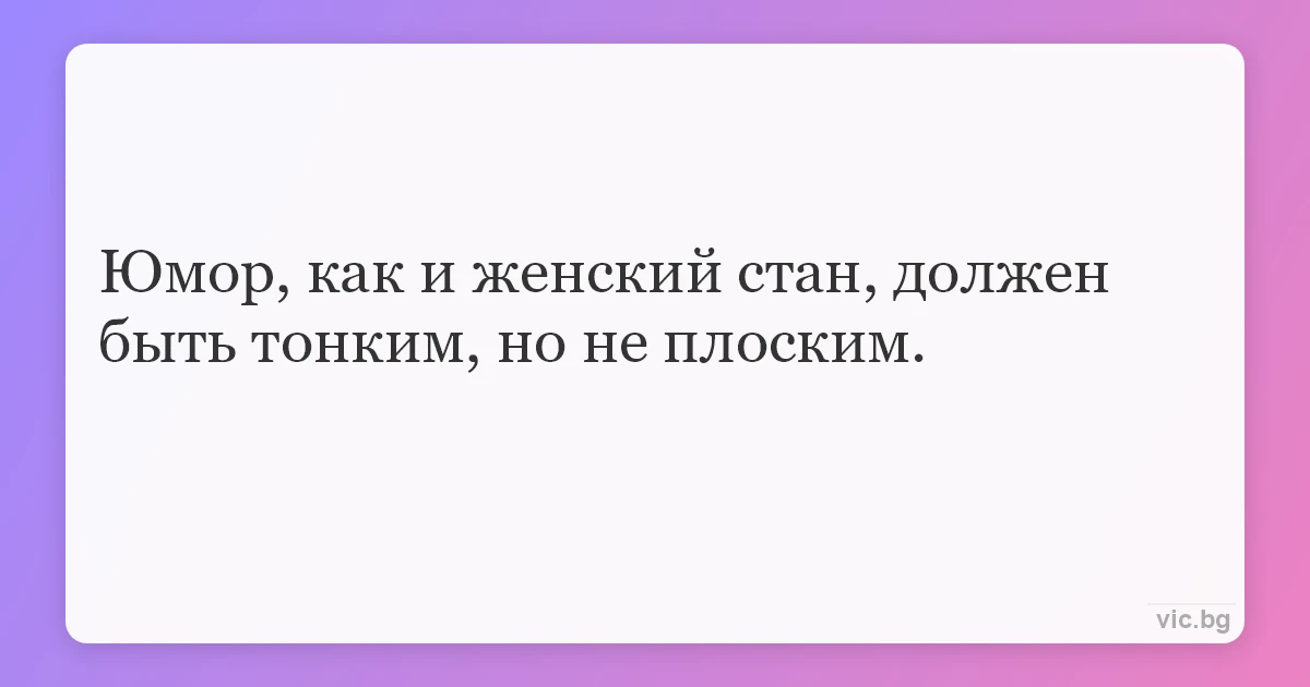 Юмор, как и женский стан, должен быть тонким, но не плоским.
