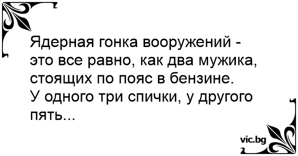 Ядерная гонка вооружений - это все равно, как два мужика, стоящих по пояс в бензине.