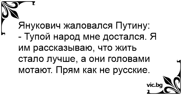 - Тупой народ мне достался. Я им рассказываю, что жить стало лучше, а они головами мотают. Прям как не русские.