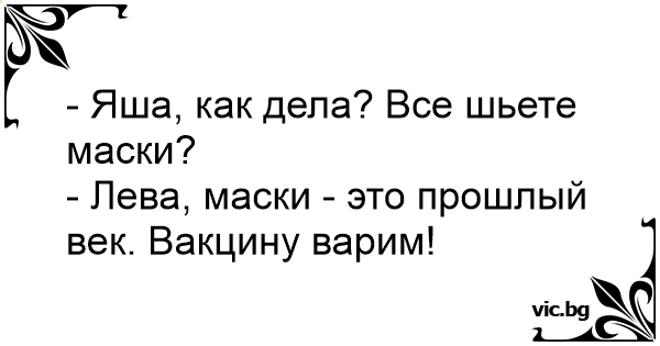 - Лева, маски - это прошлый век. Вакцину варим!