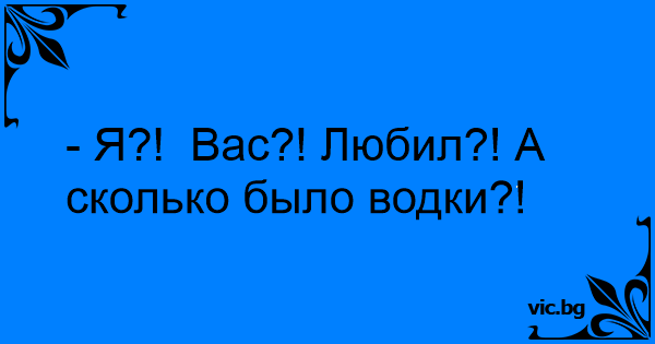 - Я?! Вас?! Любил?! А сколько было водки?!<br />