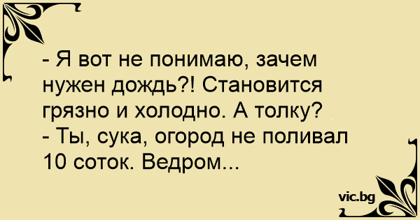 - Я вот не понимаю, зачем нужен дождь?! Становится грязно и холодно. А толку?