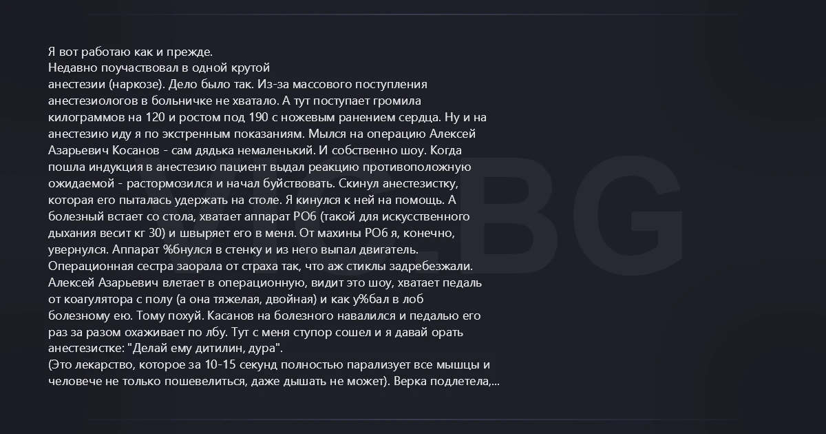 анестезистке: "Делай ему дитилин, дура".