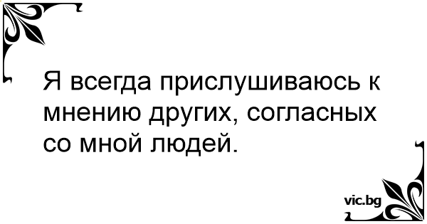 Я всегда прислушиваюсь к мнению других, согласных со мной людей.