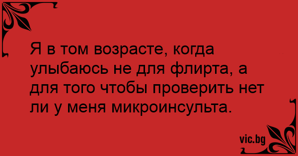 Я в том возрасте, когда улыбаюсь не для флирта, а для того чтобы проверить нет ли у меня микроинсульта.