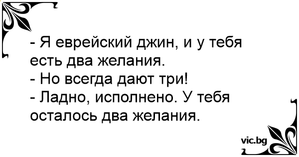 - Я еврейский джин, и у тебя есть два желания.