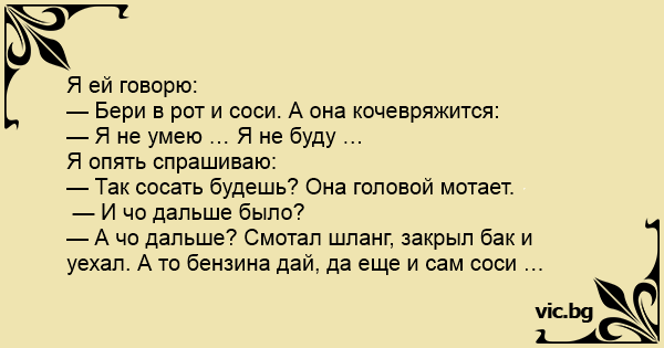 - Аз й викам "Лапай и смучи". А тя се мръщи. Аз пак питам:"Няма ли да смучеш?" Тя не ще.