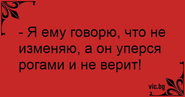- Я ему говорю, что не изменяю, а он уперся рогами и не верит!