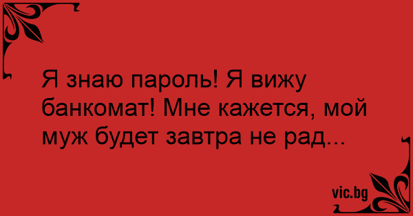 Я знаю пароль! Я вижу банкомат! Мне кажется, мой муж будет завтра не рад...
