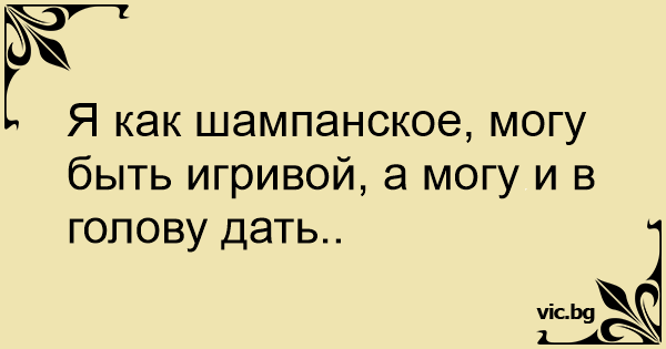 Я как шампанское, могу быть игривой, а могу и в голову дать..