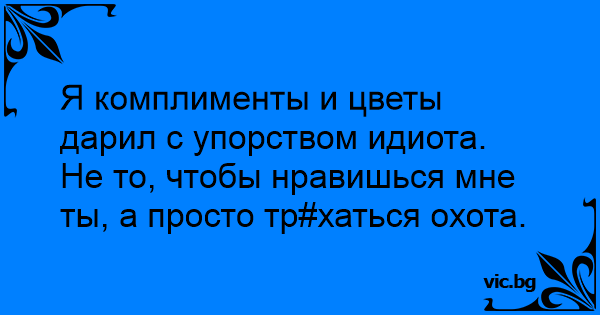 Я комплименты и цветы дарил с упорством идиота. Не то, чтобы нравишься мне ты, а просто тр#хаться охота.
