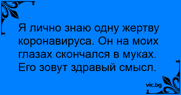 Я лично знаю одну жертву коронавируса. Он на моих глазах скончался в муках. Его зовут здравый смысл.