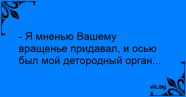 - Я мненью Вашему вращенье придавал, и осью был мой детородный орган...