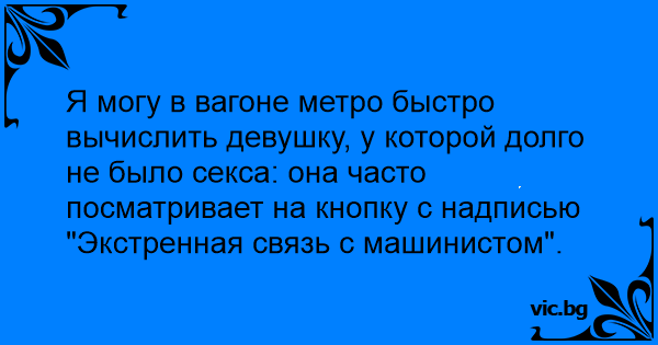 Я могу в вагоне метро быстро вычислить девушку, у которой долго не было cekca: она часто посматривает на кнопку с надписью "Экстренная связь с машинистом".
