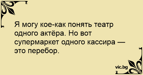 Я могу кое-как понять театр одного актёра. Но вот супермаркет одного кассира — это перебор.