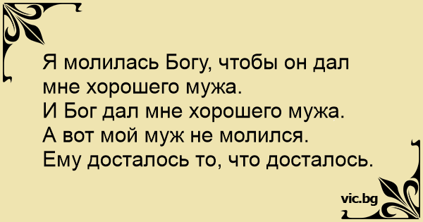 Я молилась Богу, чтобы он дал мне хорошего мужа.