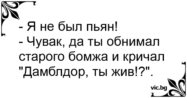 - Чувак, да ты обнимал старого бомжа и кричал "Дамблдор, ты жив!?".