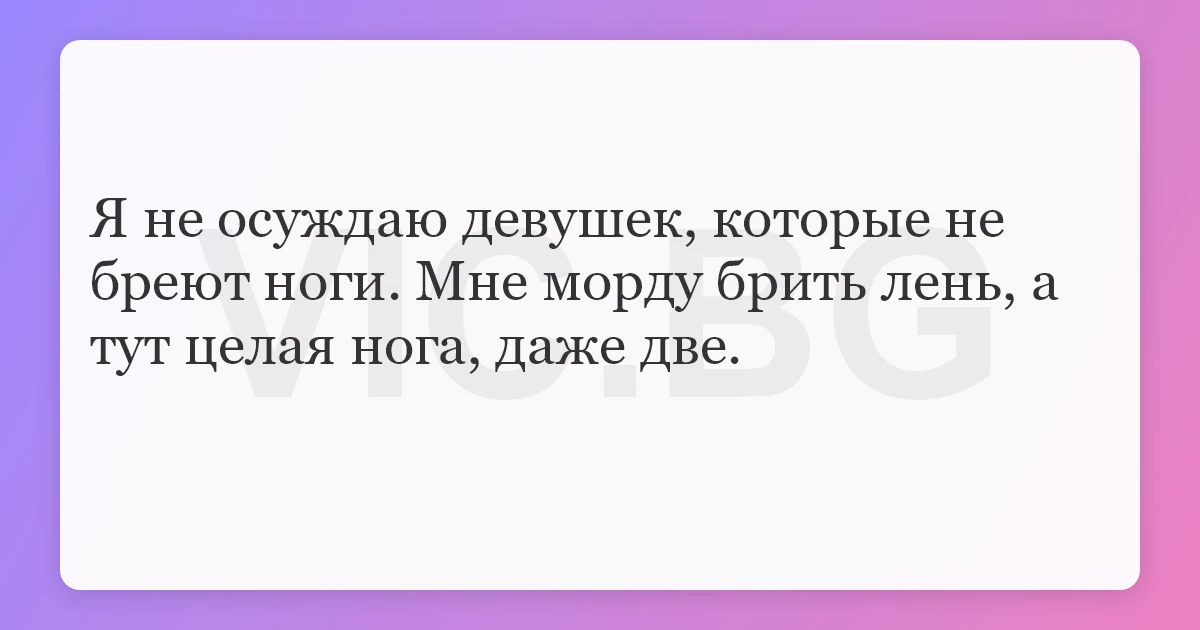 Я не осуждаю девушек, которые не бреют ноги. Мне морду брить лень, а тут целая нога, даже две.